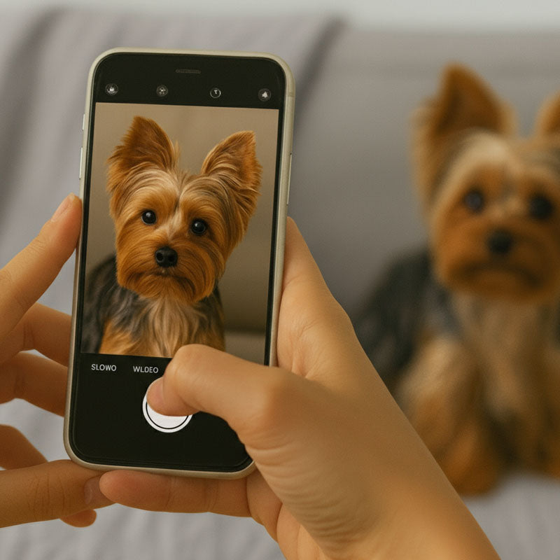 - Zrób wyraźne zdjęcie pupila w dobrze oświetlonym miejscu — najlepiej bez filtrów, w naturalnym świetle i frontalnie.